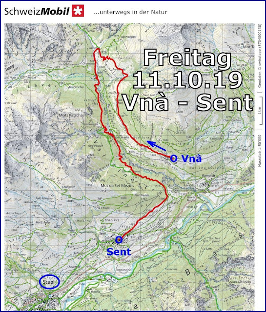 Wanderung von Vnà nach Sent (Val Sinestra)