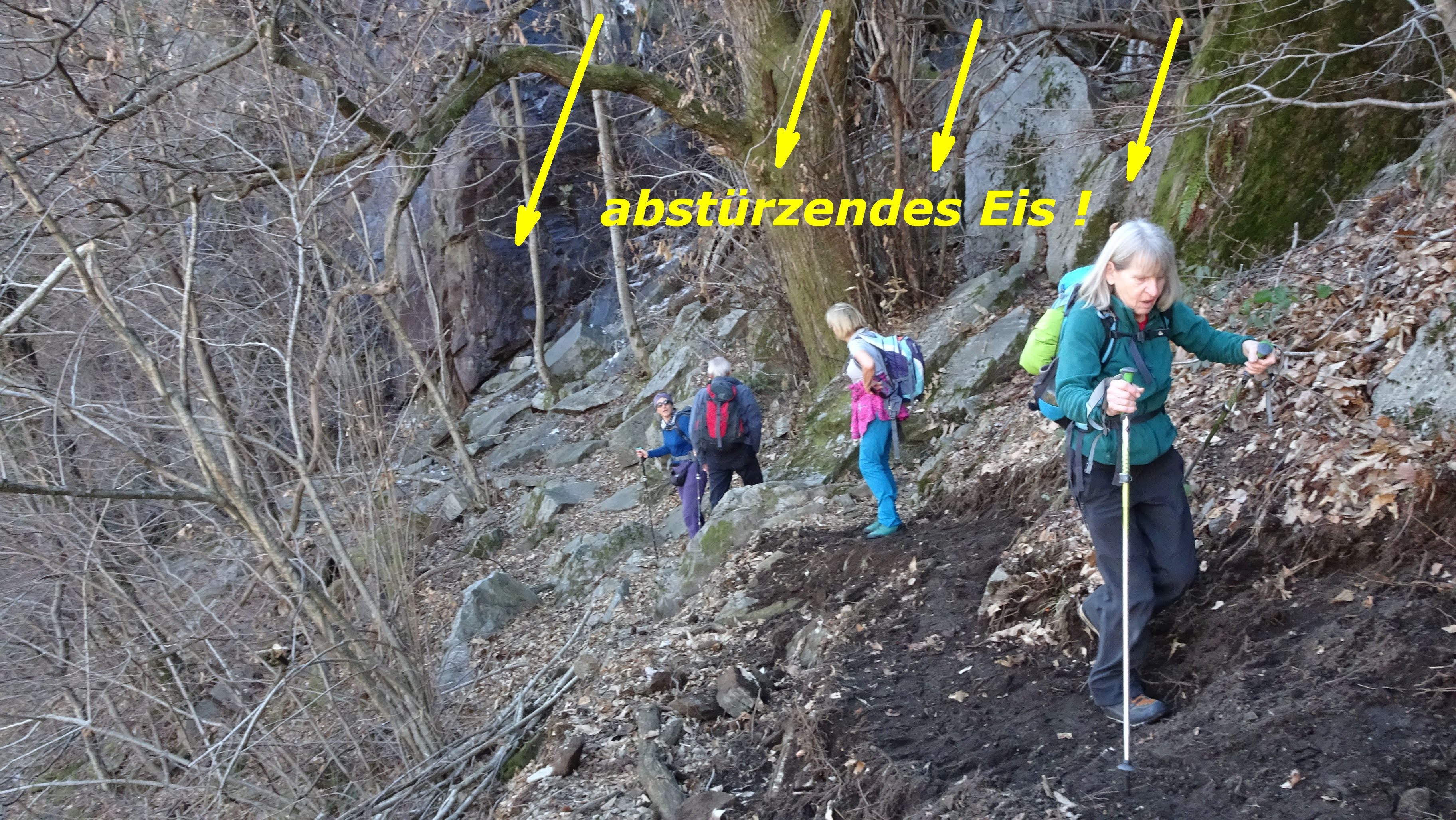 Vor uns stürzten mehrmals zahlreiche Eisbrocken auf den Weg!