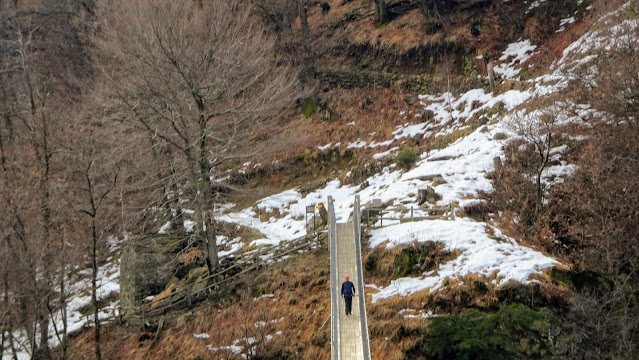 hinauf über die Ponte-Tibetano-Hängebrücke,