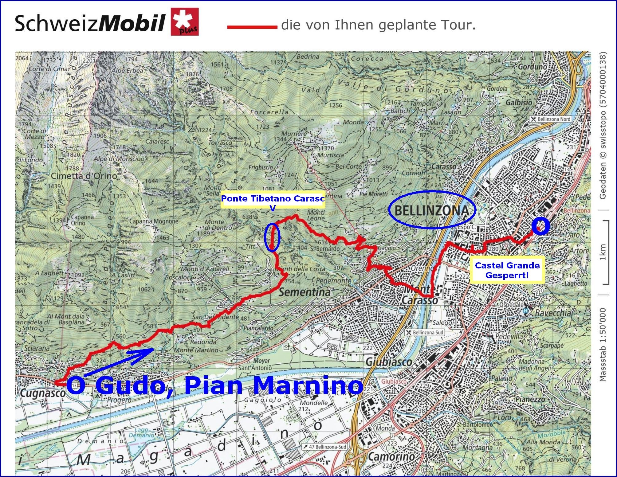 Monte Carasso (250m) – Saleggi / TicinoVeloBrücke (220m)