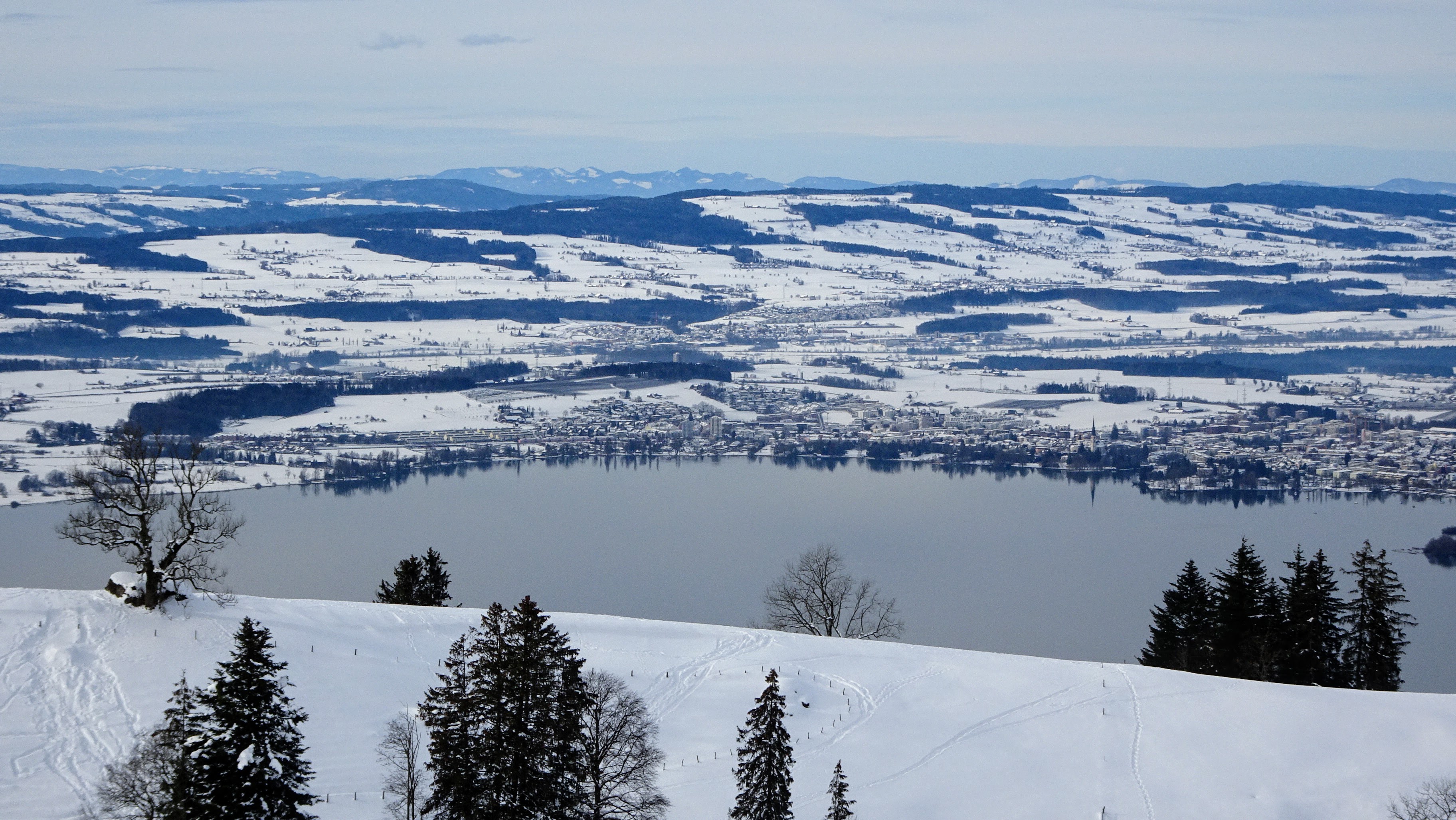 Mit Schneeschuhen über den Zugerberg und hinunter bis Zug
