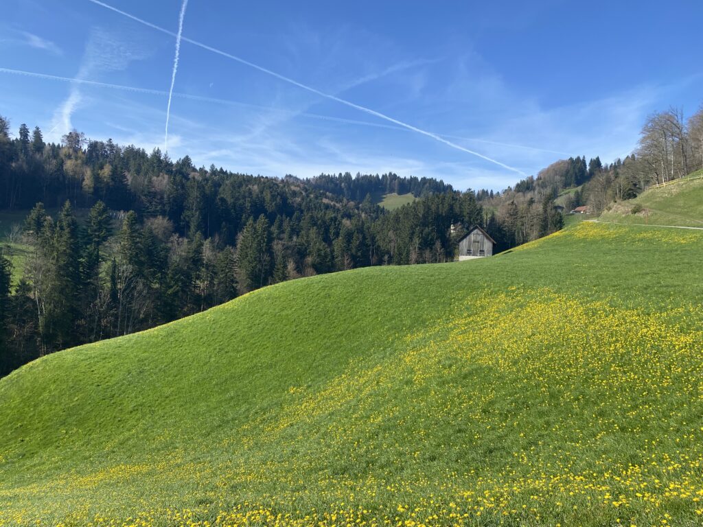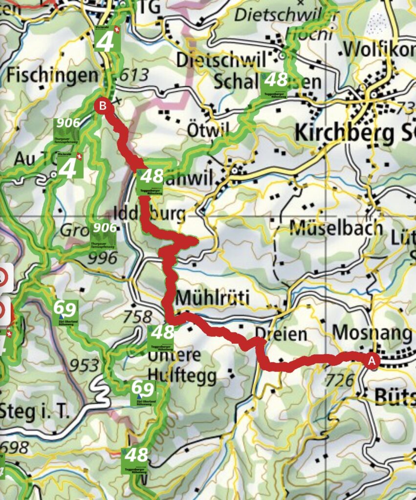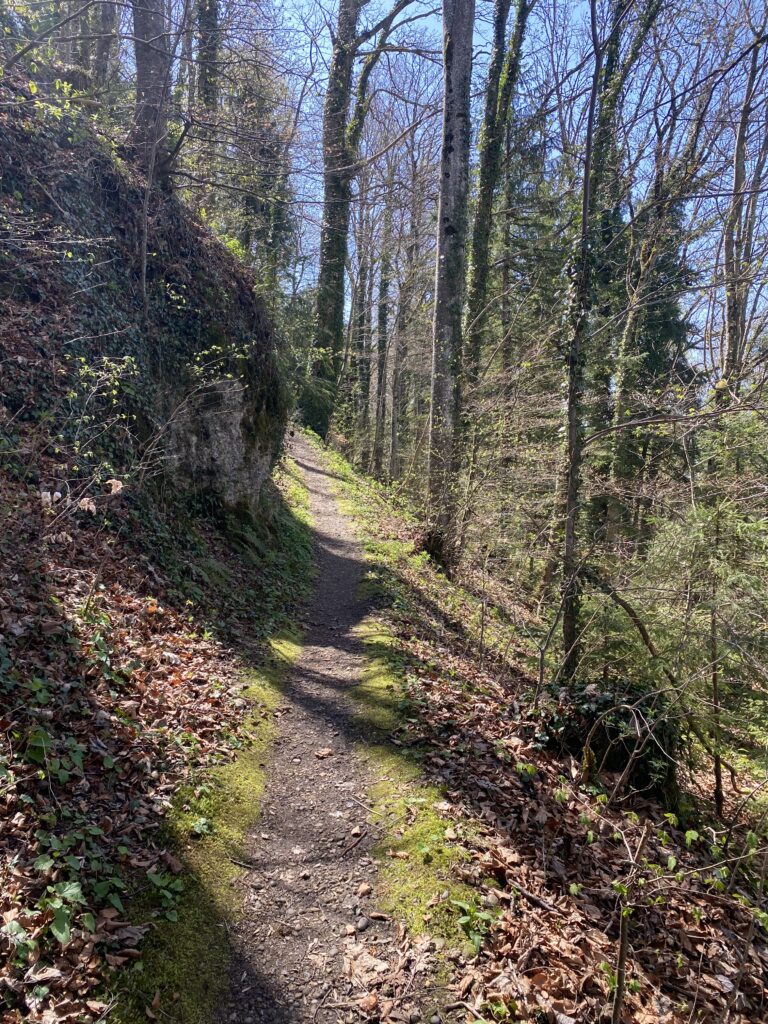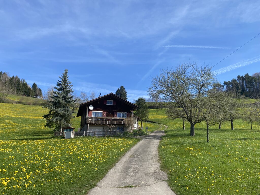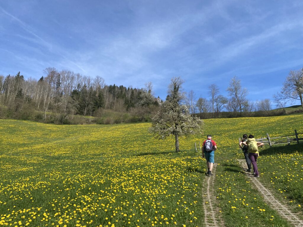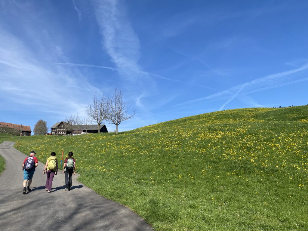 Am Samstag 11.4.26 wanderten wir (Petra, Juliet, Peter und ich) von Mosnang über Mühlrüti und Hindersenis zur Iddaburg und weiter bis zum Kloster Fischingen.