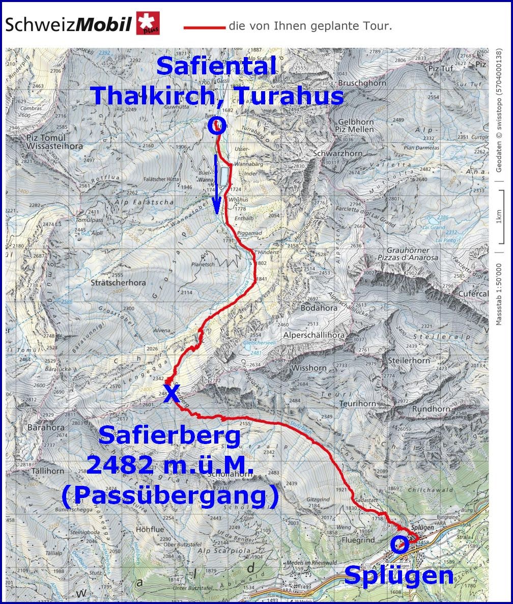 unternahmen wir die Passwanderung von Turra / Turrahus im Safiental über den Safierberg und hinunter nach Splügen im Rheinwald: