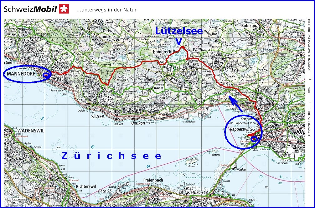 wanderten wir von Rapperswil zum Lützelsee und weiter bis Männedorf.