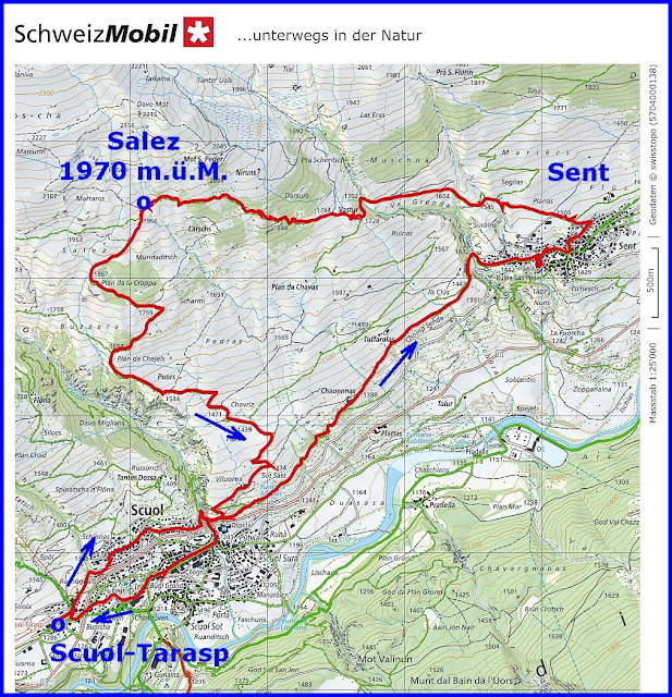Wir wanderten ab Scuol via Sent und Salez.