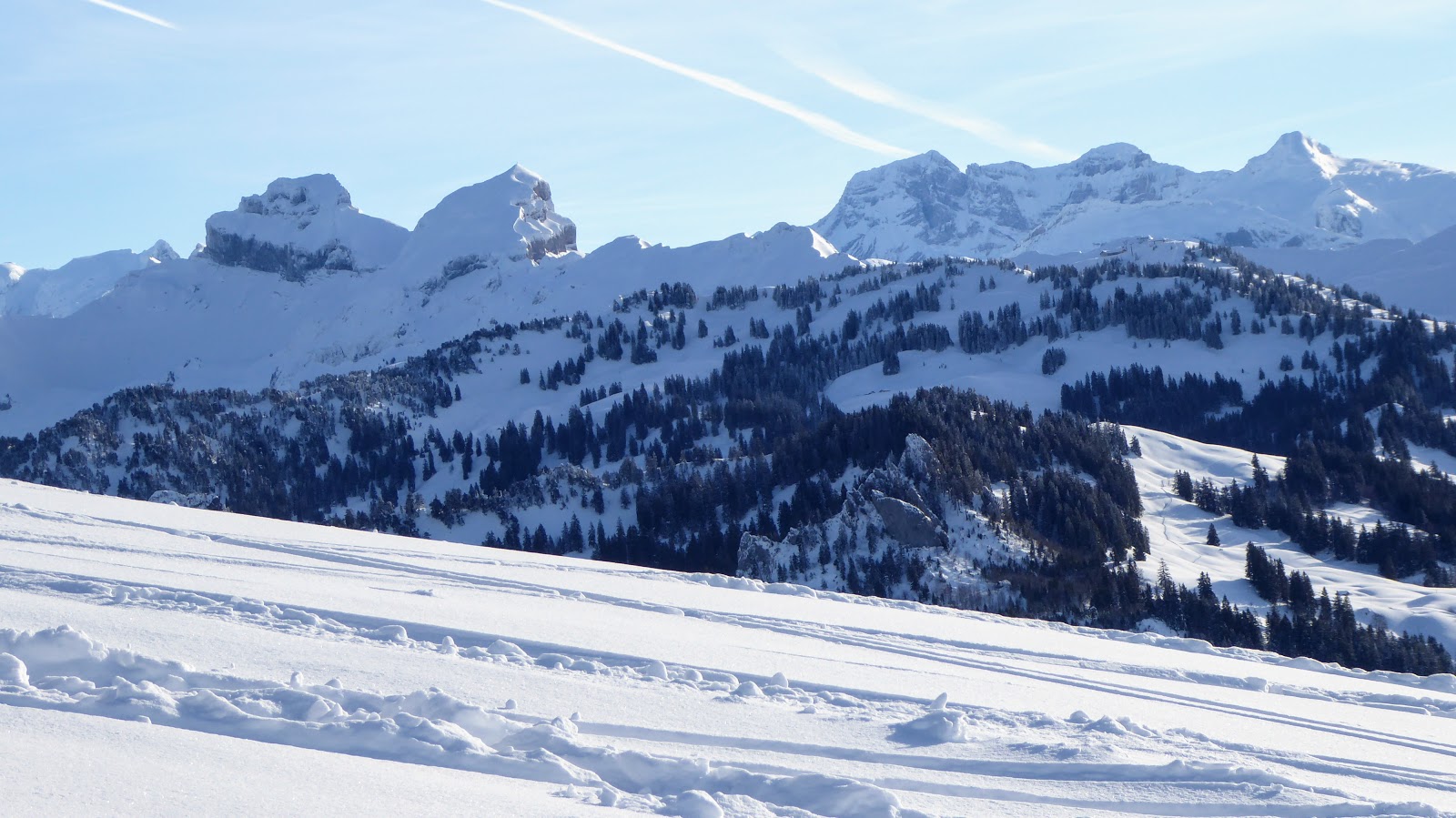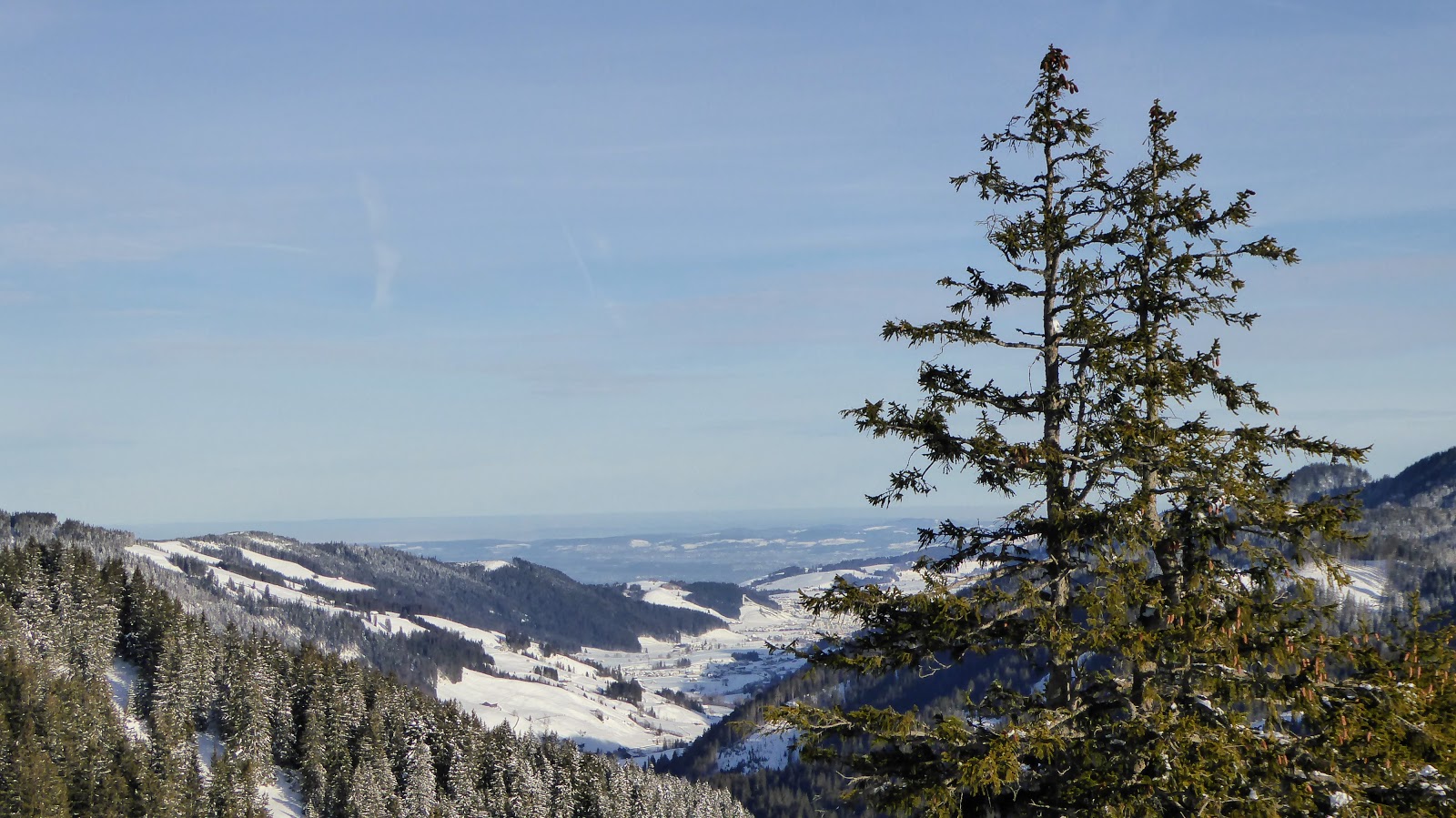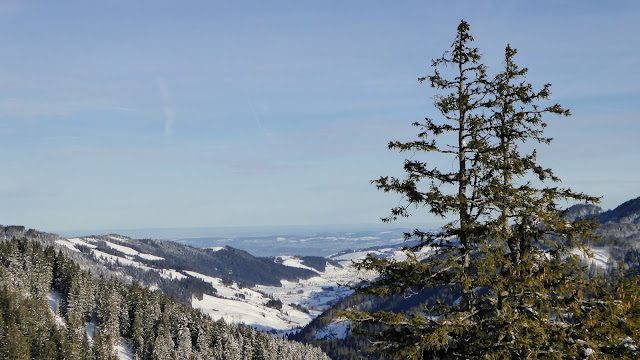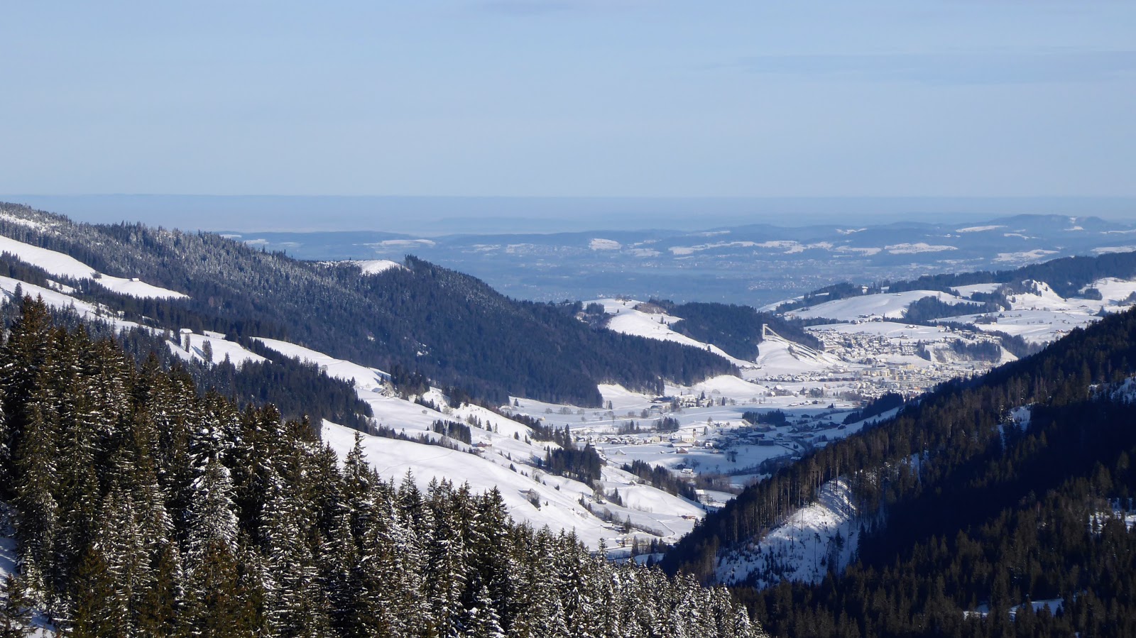Ab der Rotenflue-Gondelbahn-Bergstation wanderten wir auf breit gespurten Schneewegen via Müsliegg / Ibergeregg / Oberberg hinunter nach Sankt Karl ob Illgau.