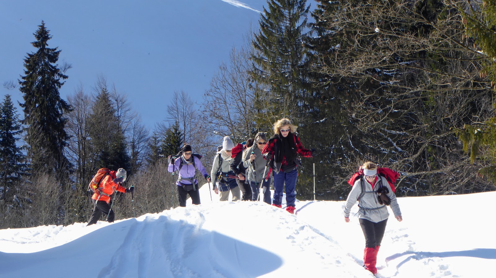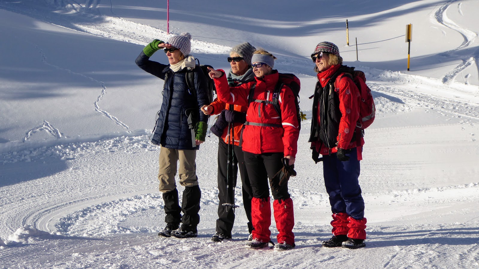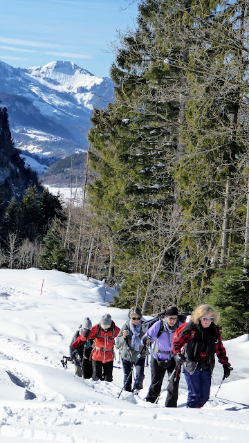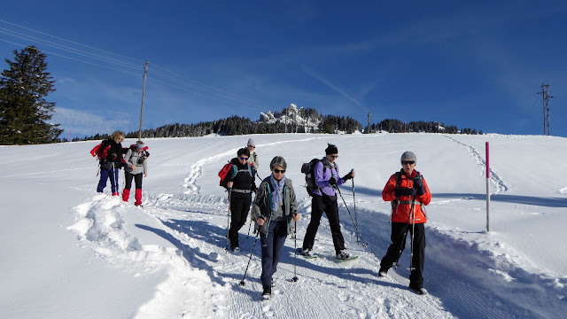 (Barbara und Beat mit Schneeschuhen / sechs Teilnehmerinnen ohne SS)