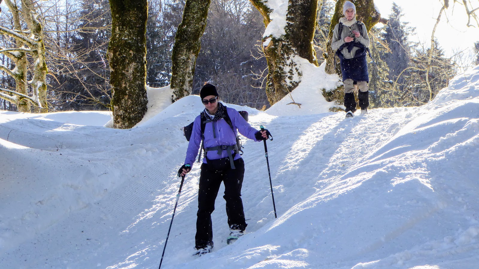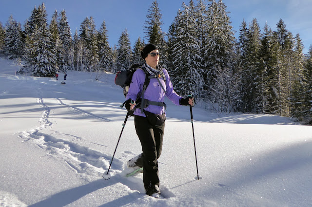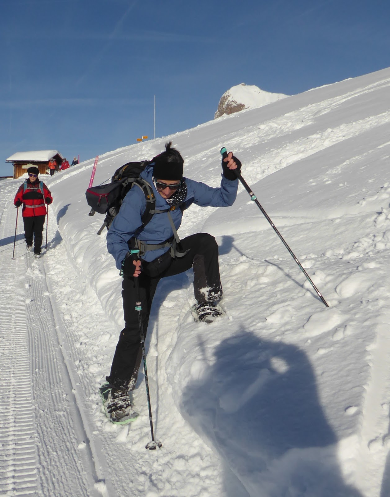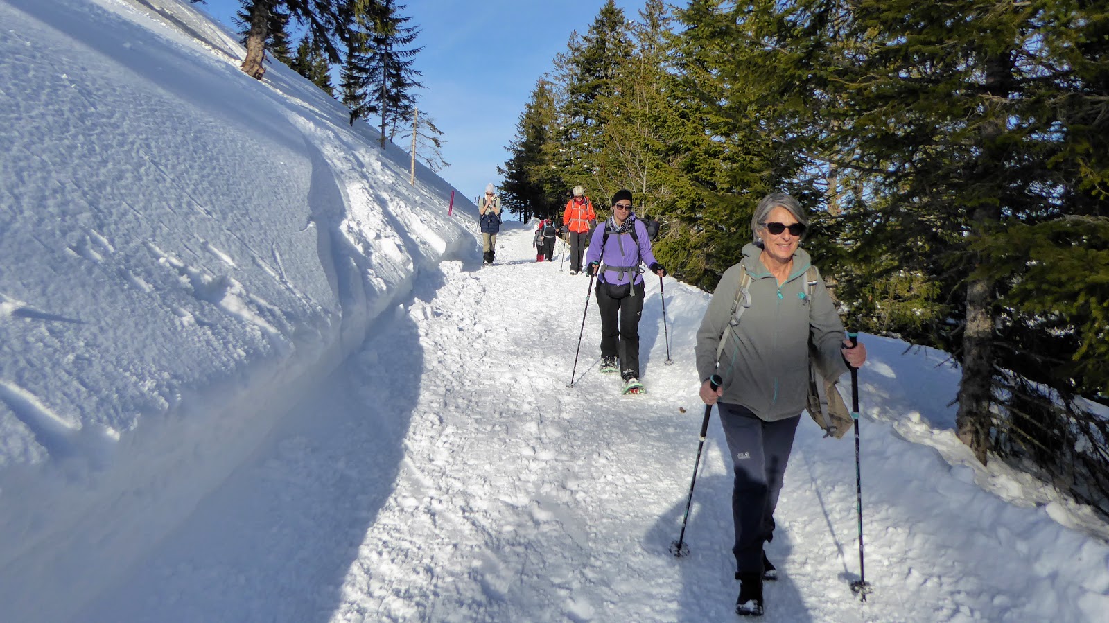 (Barbara und Beat mit Schneeschuhen / sechs Teilnehmerinnen ohne SS)