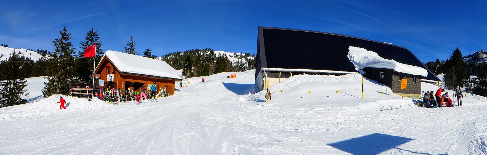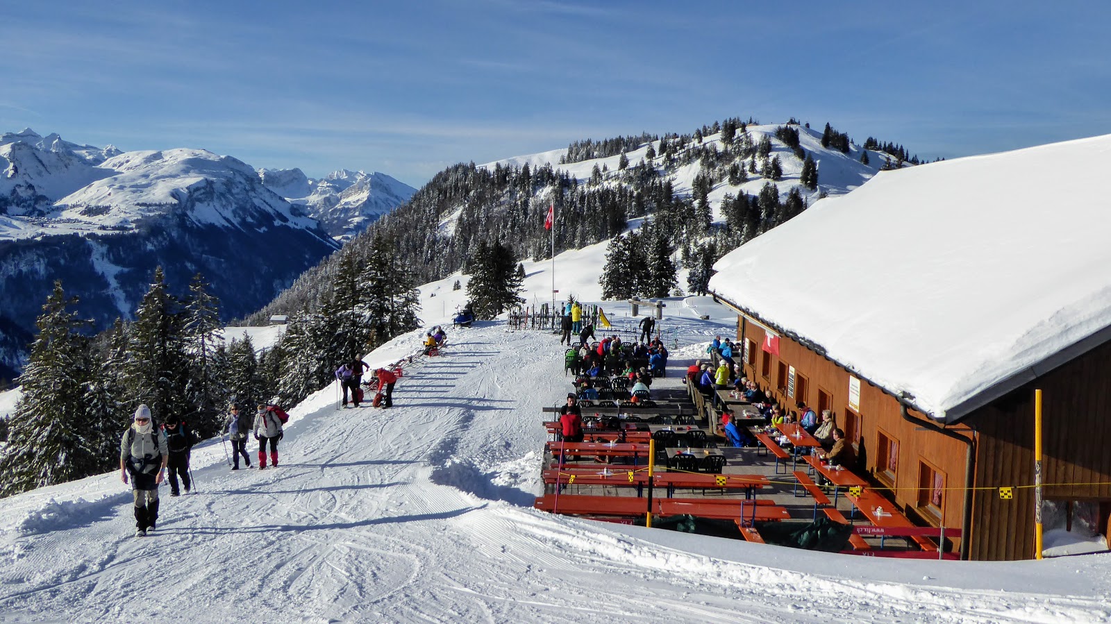 (Alle Bergrestaurant- und Skihütten-Terrassen waren besetzt!)