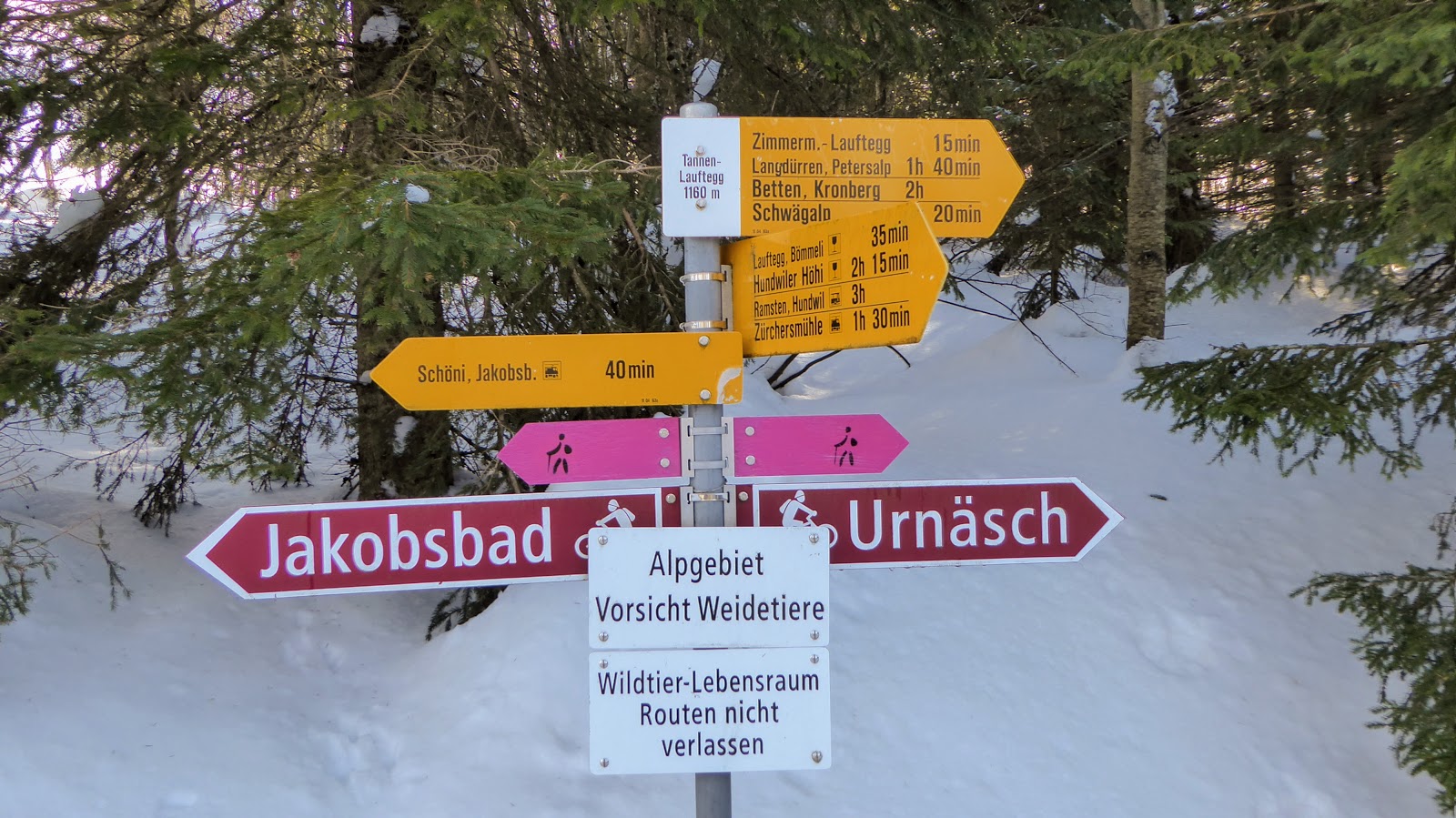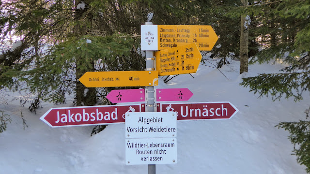unternahmen wir eine Schneeschuhtour zwischen Jakobsbad (AI) und Urnäsch (AR):