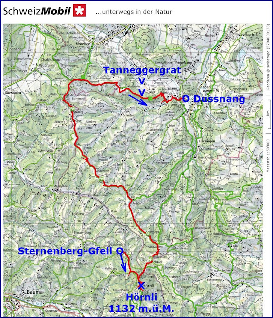 wanderten wir von Sternenberg-Gfell aufs Hörnli mit anschliessendem Abstieg via Sitzberg und Tanneggergrat nach Dussnang (TG):
