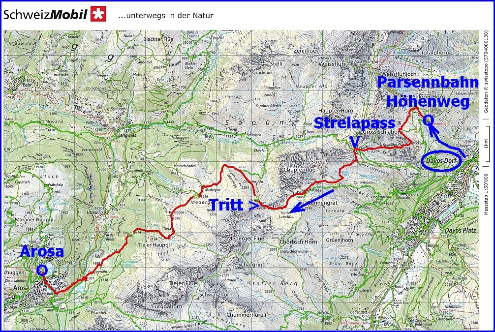 Von Davos über Strelapass und Tritt hinüber nach Arosa