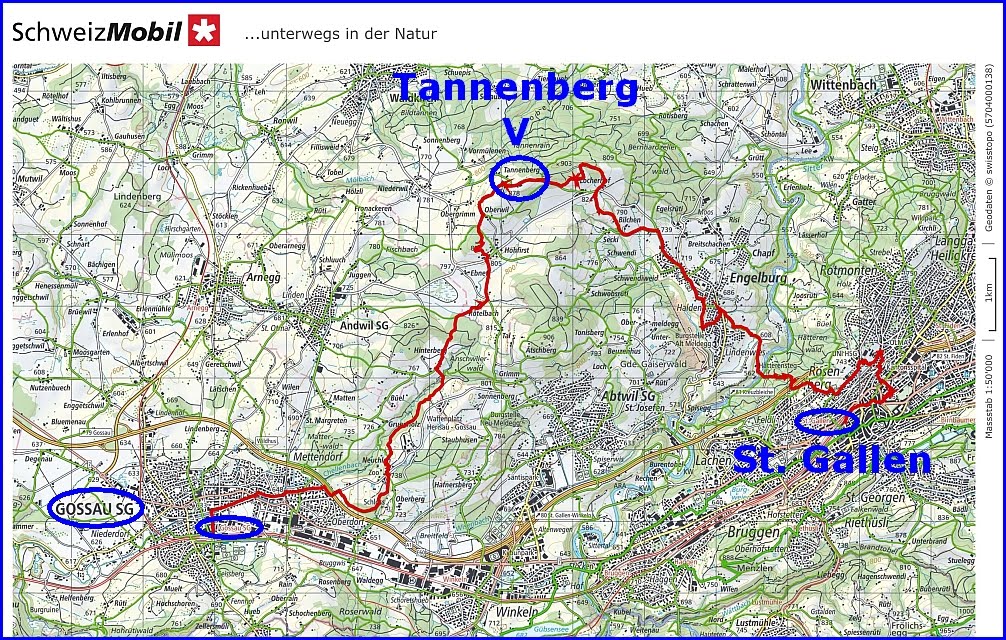 Wanderung ab Gossau SG über den Tannenberg nach St. Gallen