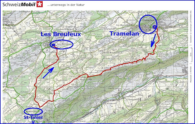 wanderten wir von Tramelan im Berner Jura über den Col du Mont Crosin zum Mont-Soleil und hinunter nach Les Breuleux im Kanton Jura.